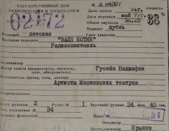 Радиопостановка по одноимённой книге советского писателя Гусейна Дадаш Оглы Наджафова.