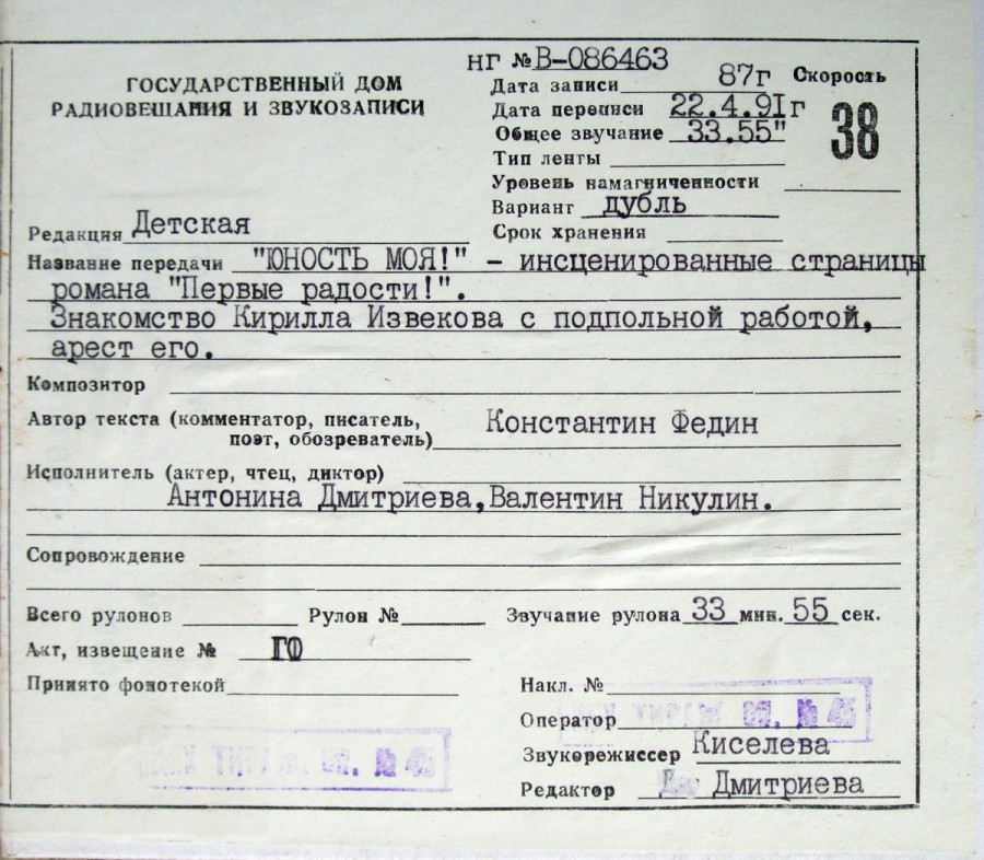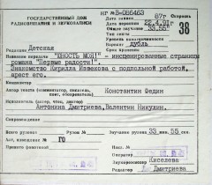 Радиопостановка детской редакции Всесоюзного радио СССР по мотивам одноимённого романа Константина Федина.