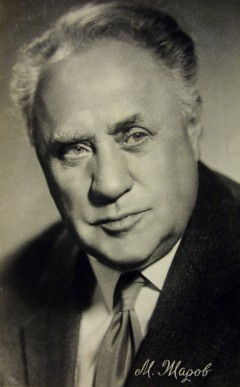 Михаил Иванович Жаров (15 (27) октября 1899г., г. Москва - 15 декабря 1981г., г. Москва) - советский актёр и режиссёр театра и кино. Герой Социалистического Труда (1974), народный артист СССР (1949), лауреат трёх Сталинских премий (1941, 1942, 1947). Кавалер трёх орденов Ленина (1967, 1970, 1974). Член ВКП(б) (1950). В 1913 году Михаил Жаров начал свою профессиональную деятельность с должности ученика-наборщика в типографии. С 1915 года работал администратором и помощником режиссёра в труппе Оперного театра Зимина. Там же ему впервые начали доверять роли статистов. В 1918 году поступил в студию при Театре Художественно-просветительного союза рабочих организаций. По окончании студии в 1920 году некоторое время служил в Опытно-героическом театре, затем - в Первом передвижном фронтовом художественном театре классической комедии. В 1921 году выступал на сцене Рогожско-Симоновского театра им. А. К. Сафонова, однако в том же году перешёл в Театр ГИТИСа. В 1926-1927 гг. и в 1929 году играл в Бакинском рабочем театре, в 1928 году - в Казанском Большом драматическом театре, в 1930 году - в Реалистическом театре. В 1931 году перешёл в Камерный театр, где служил до 1938 года. С 1938 года и до конца жизни служил актёром Малого театра Союза ССР.