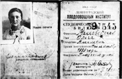 студенческий билет О.Маккавейской пробитый пулей (1941)