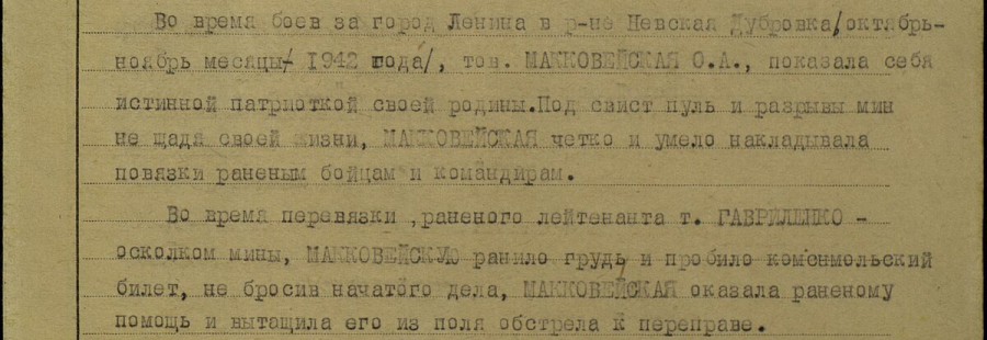 Ходатайство о награждении Ольги Маккавейской медалью "За отвагу"