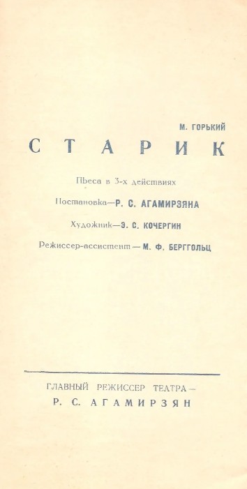«Старик» - Пьеса, 1915 год. / Первая театральная постановка (премьерный показ) - 1 января 1919 года на сцене Малого театра.