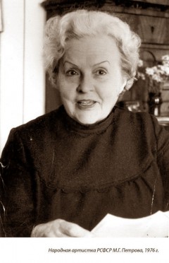 Мария Григорьевна Петрова (16.08.1906г., г. Санкт-Петербург - 24.01.1992г., г. Санкт-Петербург) - Народная артистка РСФСР (1978), режиссёр и диктор Ленинградского радио. Обладательница редкого по тембру и выразительности голоса. Мария Григорьевна Петрова - это целая эпоха в жизни г. Ленинграда. Её голос, интонации были как бы позывными Ленинграда. Взрослые и дети включали радио на полную громкость и семьями, все вместе, слушали, как она читала. Её артистизм, сила воздействия на слушателя в сочетании с безграничным авторитетом, завоеванным ещё в годы войны и блокады Ленинграда, повлияли на целые поколения наших граждан. Многие советские радиослушатели буквально выросли на передачах с Марией Петровой, мы, узнали и полюбили её героев, и взрослели, убеждённые в том, что правда, мужество, доброта - не только в книжках, а в самой жизни, - и становились чуть лучше.