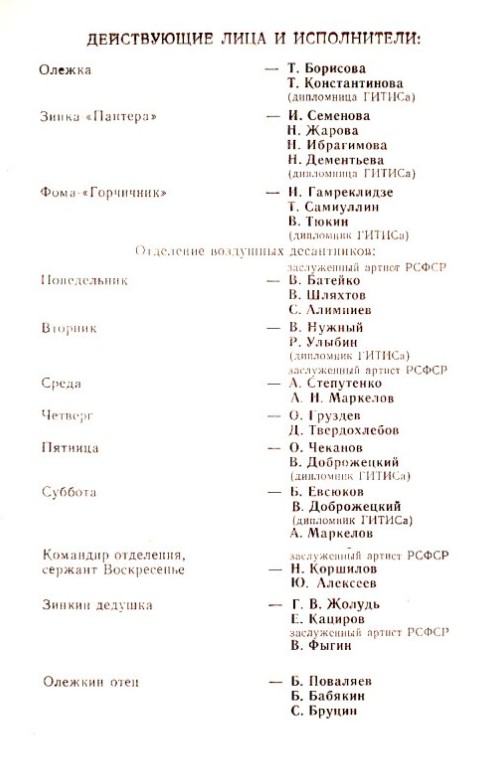 Скучающий без друзей мальчик Олежка написал письмо в газету с просьбой прислать ему оловянных солдатиков. И вот в деревне появились семеро настоящих солдат. Однако звали их совсем по-сказочному: Понедельник, Вторник, Среда, Четверг, Пятница, Суббота и их командир Воскресенье.