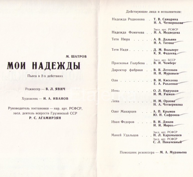 «Мои Надежды» - Драма в 2-х частях. - Москва : ВААП, 1977 г.