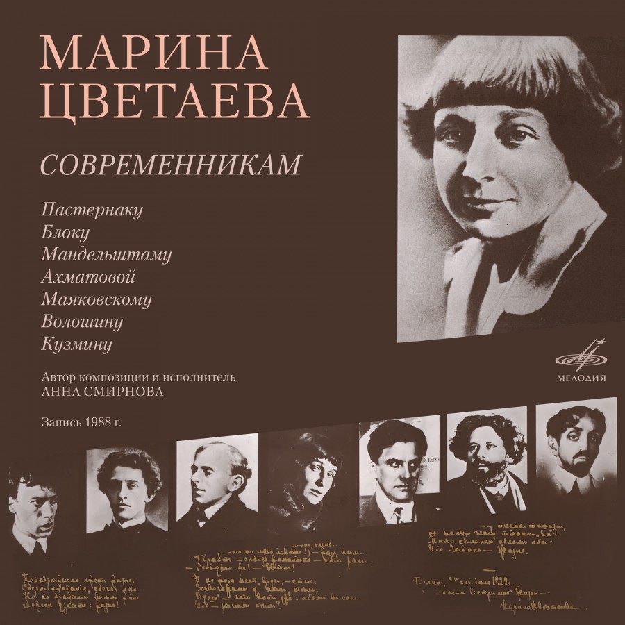 Запись с грампластинки Всесоюзной студии звукозаписи "Мелодия" - М. Цветаева «Современникам. Стихи, проза, письма» - Б. Пастернаку, А. Блоку, О. Мандельштаму, А. Ахматовой, В. Маяковскому, М. Волошину, М. Кузмину. Автор композиции и исполнитель Анна Смирнова.