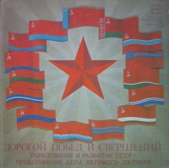 Запись с грампластинки Всесоюзной студии звукозаписи «Мелодия» - Документальная композиция «Дорогой побед и свершений (образование и развитие СССР - продолжение дела Великого Октября)». В композиции её авторами использованы материалы Центрального Государственного архива звукозаписей (ЦГАЗ) СССР.