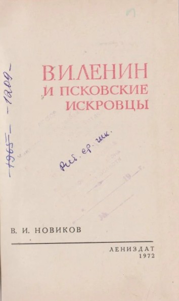 «В.И. Ленин и псковские искровцы». - Лениздат (2-е изд.), 1972 год.