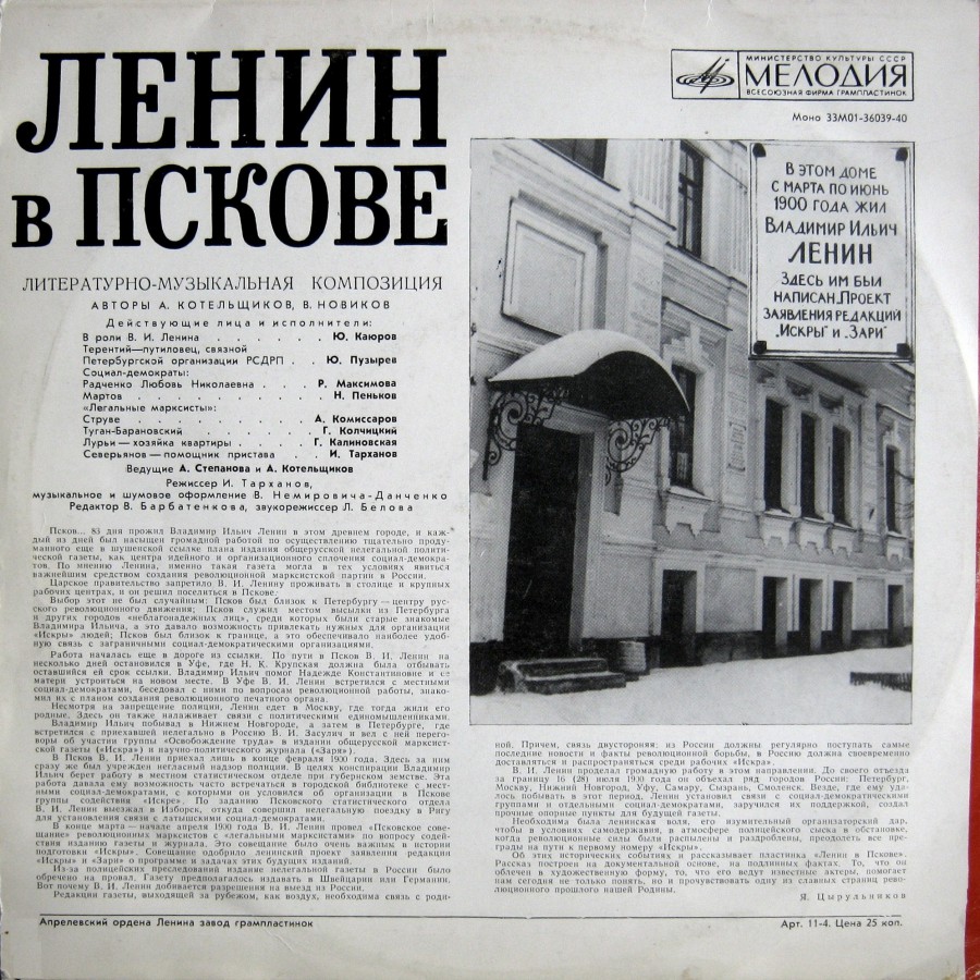 Запись с грампластинки Всесоюзной студии звукозаписи «Мелодия» - Литературно-музыкальная композиция подготовленная Всесоюзным радио СССР по одноимённому сценарию Виктора Новикова и Аркадия Кеслера (Котельщикова). Основу сценария составили материалы из монографии Виктора Новикова - «В.И. Ленин и псковские искровцы».